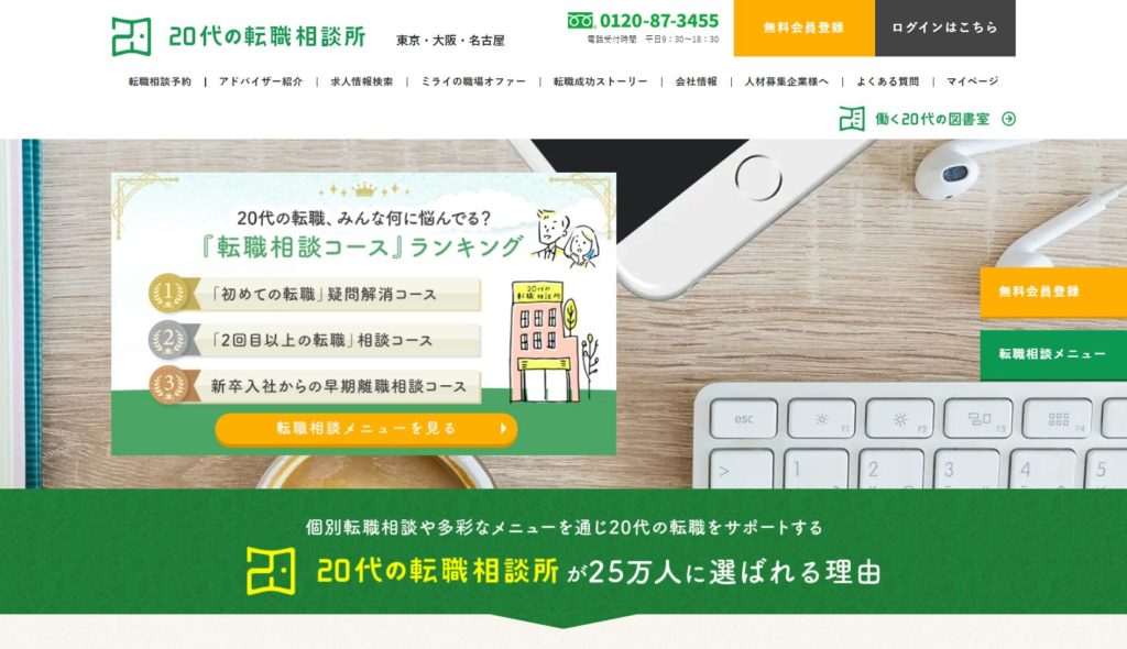 | 20代の転職相談所 (いい就職ドットコム) | 第二新卒向け 既卒向け 新卒向け | 第二新卒向け8,500 | 20代 正社員求人 リモートワーク求人検索可 拠点:東京、大阪、名古屋 |
